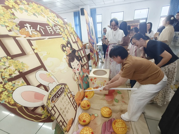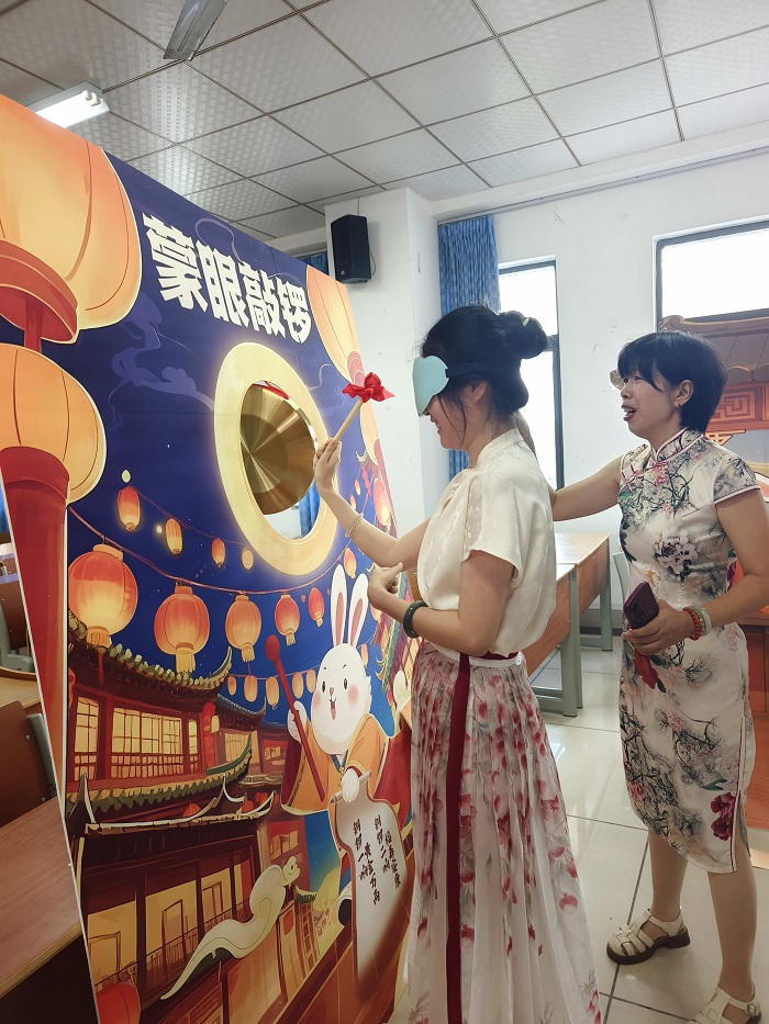 本次游园会精心设置了中秋投壶、夹个月饼、蒙眼敲锣、圈住好运四项集趣味性、传统性与协作性于一体的互动游戏,吸引了众多教职工热情参与。