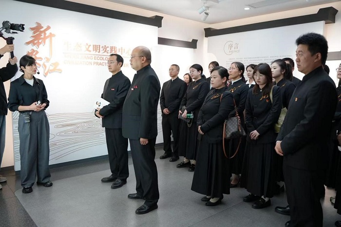 师生们首站抵达新安江生态文明实践中心,在“溯源”“实践”“今日”“愿景”四大篇章的沉浸式参观中,系统了解了新安江生态补偿机制的探索历程与卓越成就,从实践源头深切感悟“绿水青山就是金山银山”理念的真理力量。