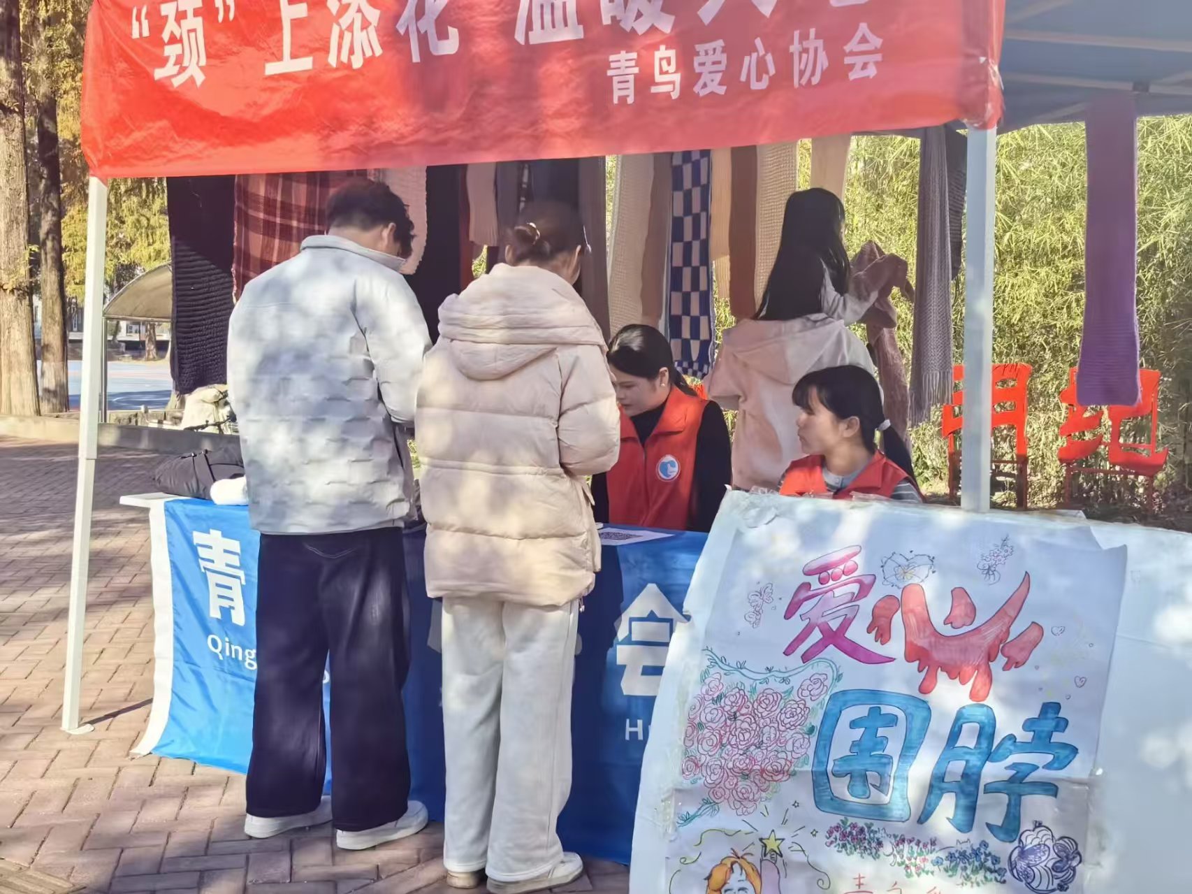 由黄山学院青鸟爱心协会在南北校区同时主办的“爱心围脖”公益活动在11月23日顺利落幕。这场持续23天的温暖行动中,共350名参与者赴约,12位志愿者全程保障,将百条满载心意的围脖发往西部儿童手中。