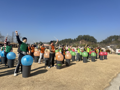 在“同心击鼓”环节,全体人员手持鼓槌,随节拍整齐挥动,鼓声铿锵、气势如虹,将活动氛围推向高潮。这面同心鼓,不仅敲响了团结奋进的激昂旋律,更激荡起众志成城、锐意进取的奋进力量。