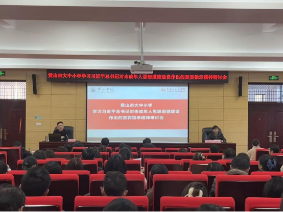为深入学习贯彻习近平总书记关于未成年人思想道德建设的重要指示精神,扎实推进黄山市大中小学思政课一体化共同体建设,2025年1月16日,由黄山学院马克思主义学院与黄山市教育科学研究院联合主办的“大中小学学习习近平总书记对未成年人思想道德建设重要指示精神研讨会”在黄山学院率水校区顺利举行。