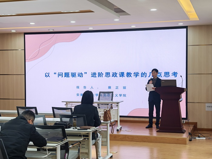 为全面学习贯彻习近平总书记关于学校思政课建设重要指示精神和新时代学校思政课建设推进会精神,根据《关于巡查马克思主义学院党总支的意见反馈》和《黄山学院本科教育思想观念大讨论工作方案》工作部署要求,马克思主义学院于3月25日下午逸夫综合楼5306开展2025-2026学年第二学期教学沙龙系列活动。本次活动特邀安徽建筑大学蔡正丽副教授作专题报告,学院副院长吴云峰主持活动,全体教师参会。