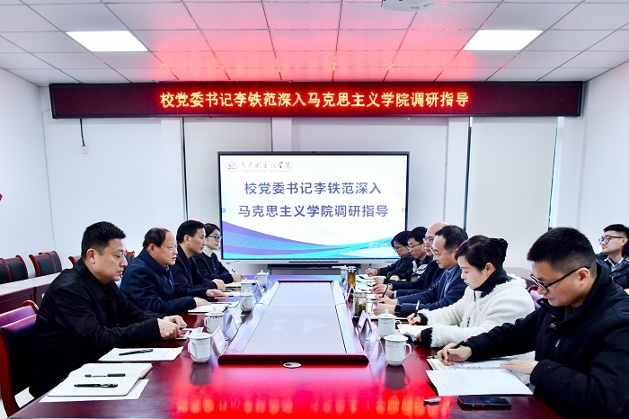 3月24日下午,校党委书记李铁范带队深入马克思主义学院开展专题调研,围绕树立和践行正确政绩观学习教育推进、2026年全国两会精神宣讲落地、进一步加强马克思主义学院建设等工作,听取意见建议、共谋发展良策。校办公室、组织部、宣传(统战)部负责人陪同调研,马克思主义学院领导班子成员、各教研室主任及教师代表参加座谈。