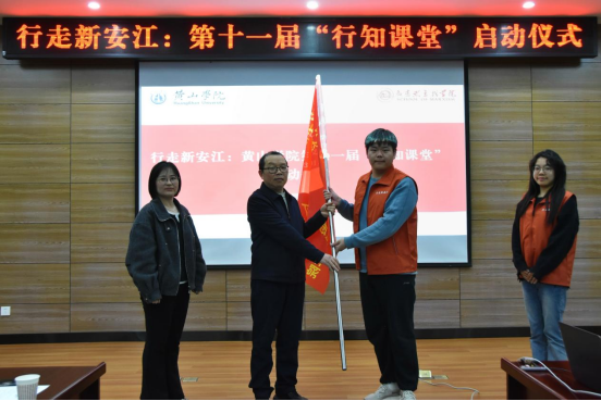 在热烈的掌声中,宣传部副部长汪路金与团委副书记方淼晖共同为实践活动授旗。飘扬的旗帜既是知行合一的契约象征,更承载着青年扎根大地、服务发展的使命。